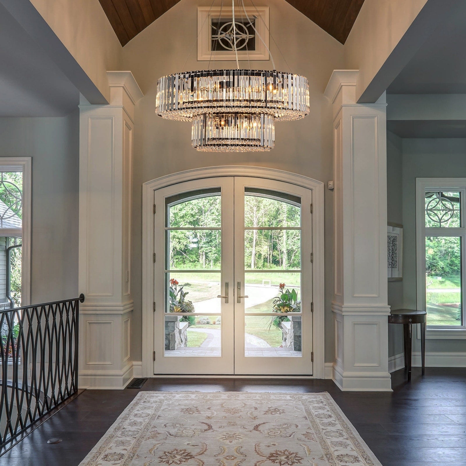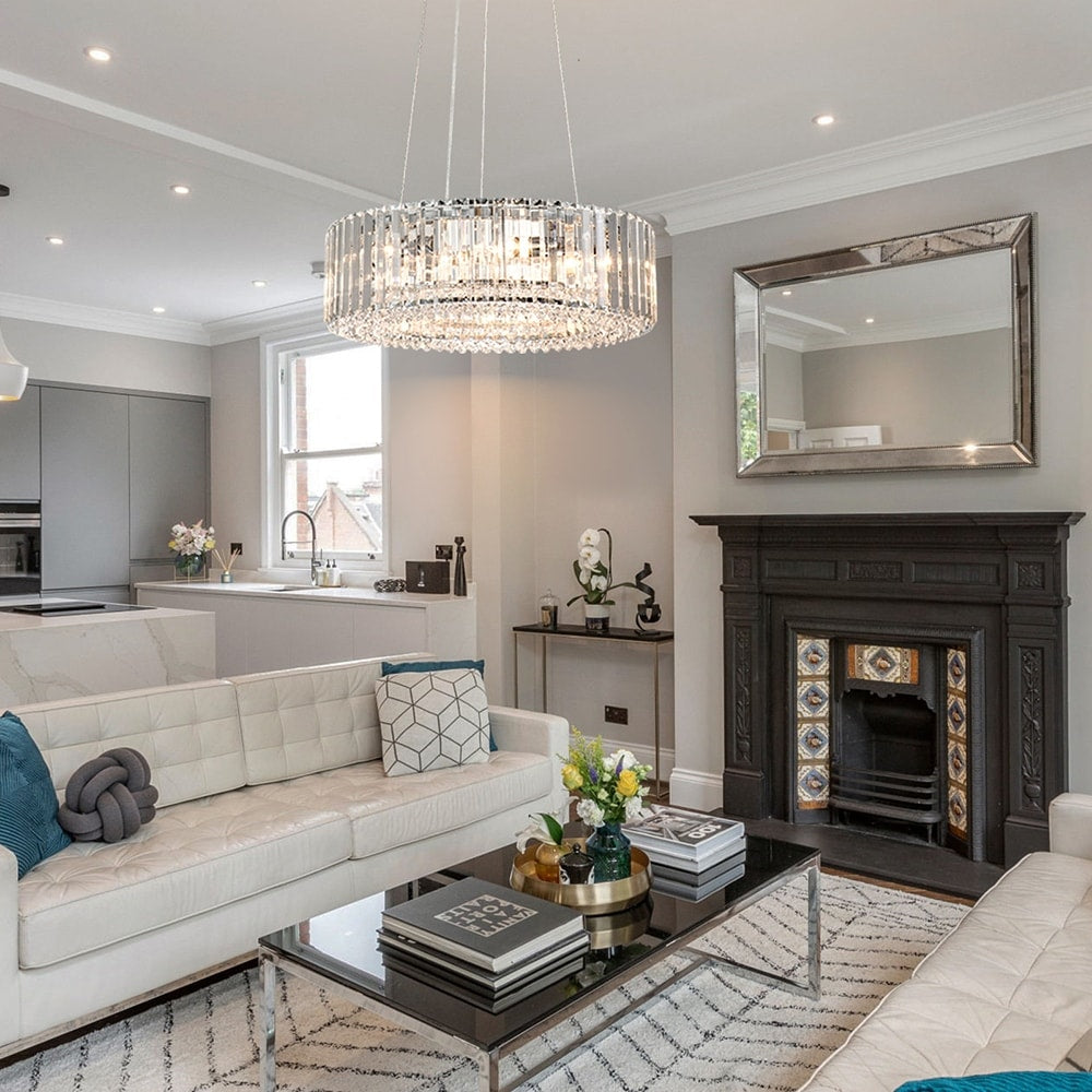 Sublimez votre espace avec l'élégance moderne du lustre en cristal OYIPRO. Doté d'un abat-jour cylindrique en cristal transparent et d'une structure circulaire épurée chromée, noire ou dorée, ce lustre allie un charme intemporel à un style contemporain. Disponible en versions 6, 8 ou 12 lumières, il diffuse une lumière chaude et rayonnante, idéale pour les salles à manger, les cuisines, les salons et bien plus encore. Sa chaîne de suspension ajustable de 150 cm et son support compatible avec les plafonds inclinés permettent une installation flexible, tandis que ses accents de cristal de haute qualité ajoutent une touche de luxe à tout intérieur. Compatible avec les ampoules et les interrupteurs à intensité variable, il est parfait pour créer l'ambiance idéale dans n'importe quelle pièce.