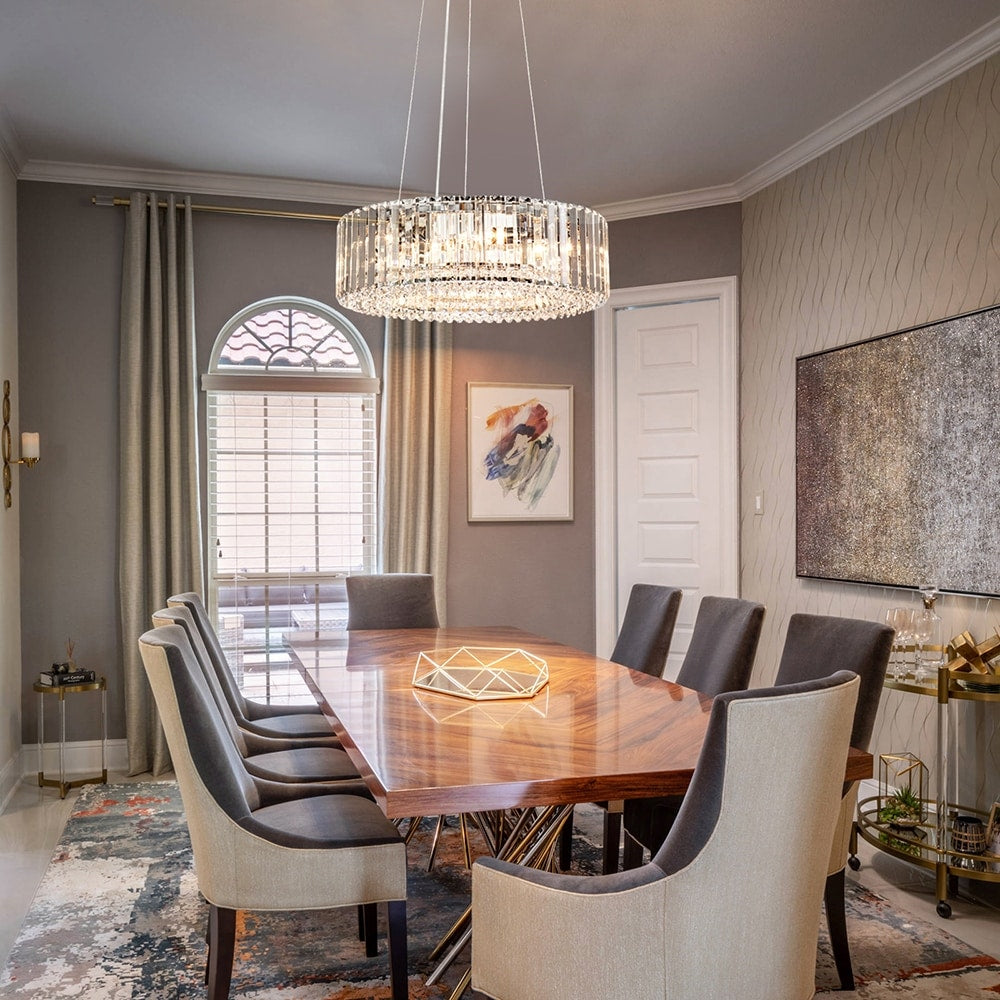 Lustre moderne rond en cristal OYIPRO à 6/8/12 lumières, suspension en forme de tambour pour îlot de cuisine