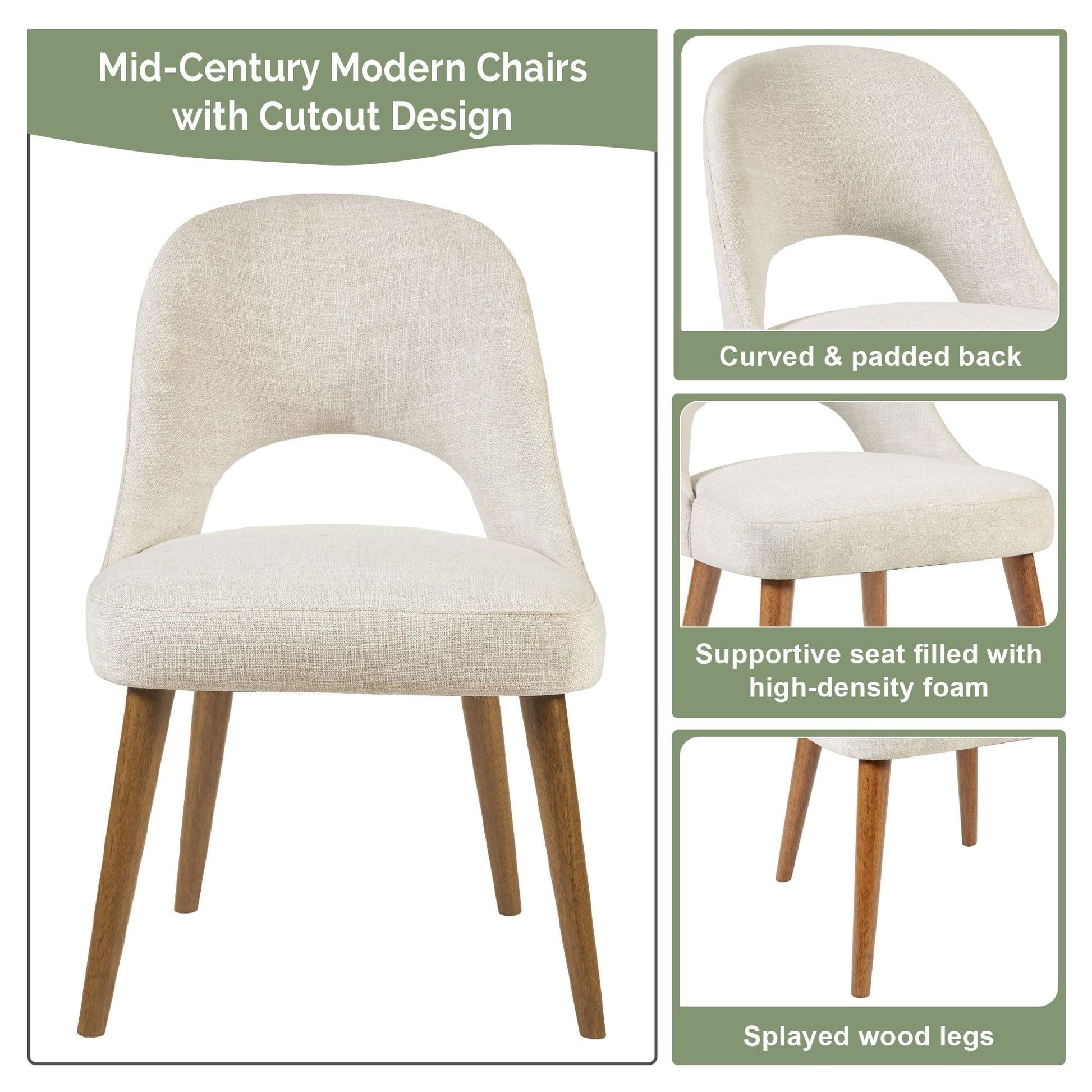 Sublimez votre intérieur avec les chaises de salle à manger Nola d'INK+IVY (lot de 2). Ces chaises polyvalentes, au style moderne du milieu du siècle, présentent un dossier ajouré incurvé et des pieds en bois évasés, pour un design élégant et compact qui se glisse facilement sous les tables. Revêtues d'un tissu doux, résistant et facile d'entretien, elles sont dotées d'une assise épaisse en mousse haute densité offrant un confort et un soutien exceptionnels, même lors de longues heures d'utilisation. Conçues pour durer, chaque chaise supporte jusqu'à 136 kg (300 lb), et l'ajourement du dossier sert de poignée pratique pour les déplacer aisément. Idéales pour les salles à manger, les salons, les chambres, les entrées, les bureaux et bien plus encore. Un assemblage simple et rapide des pieds est requis pour plus de praticité.