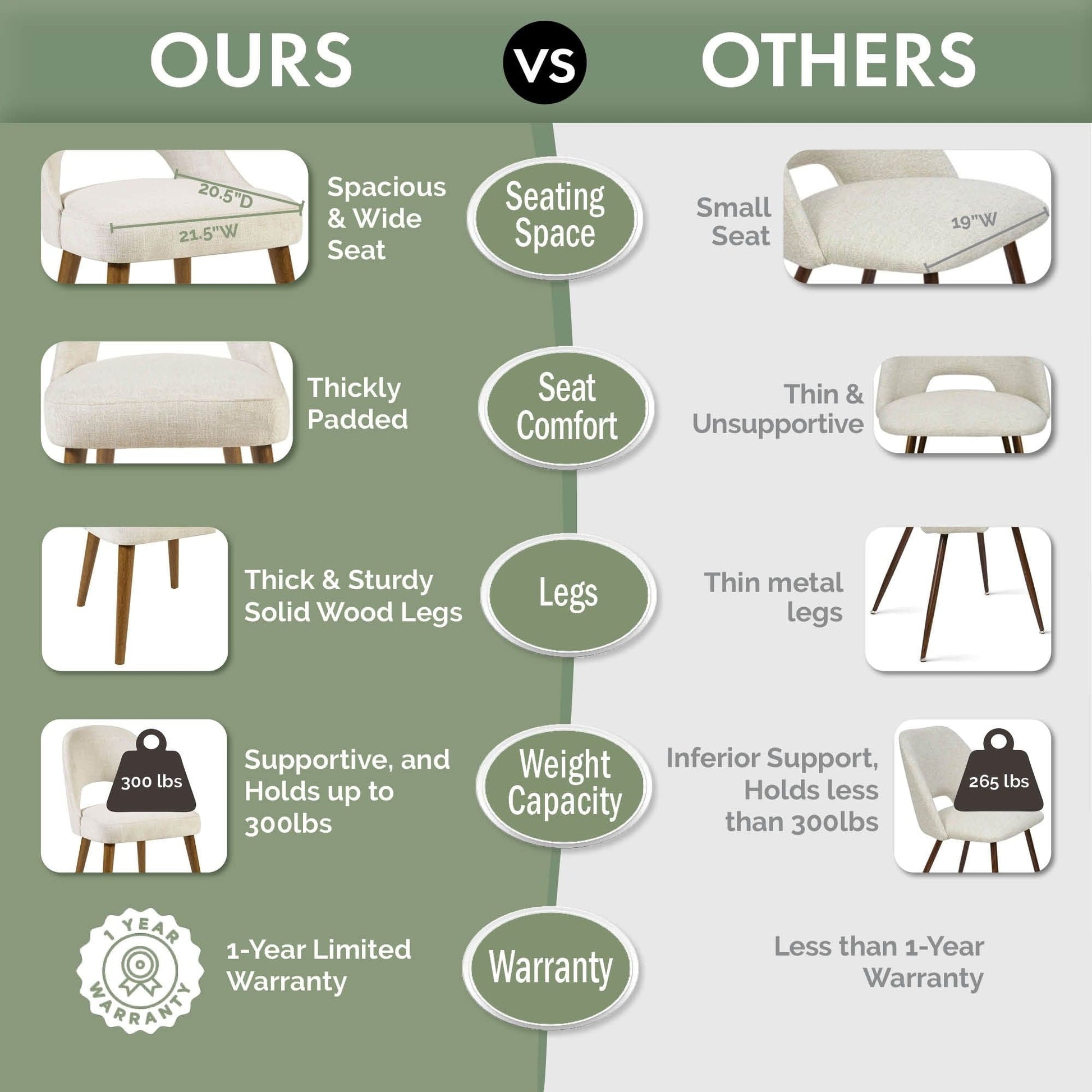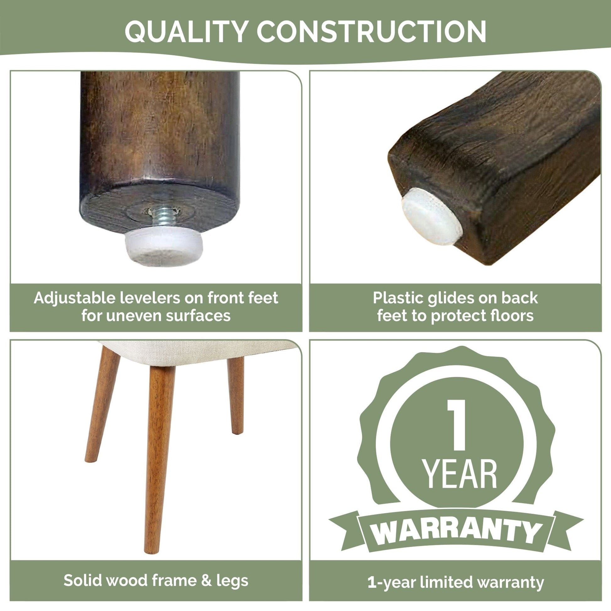 Construction robuste avec un cadre et des pieds en bois massif pouvant supporter jusqu'à 136 kg