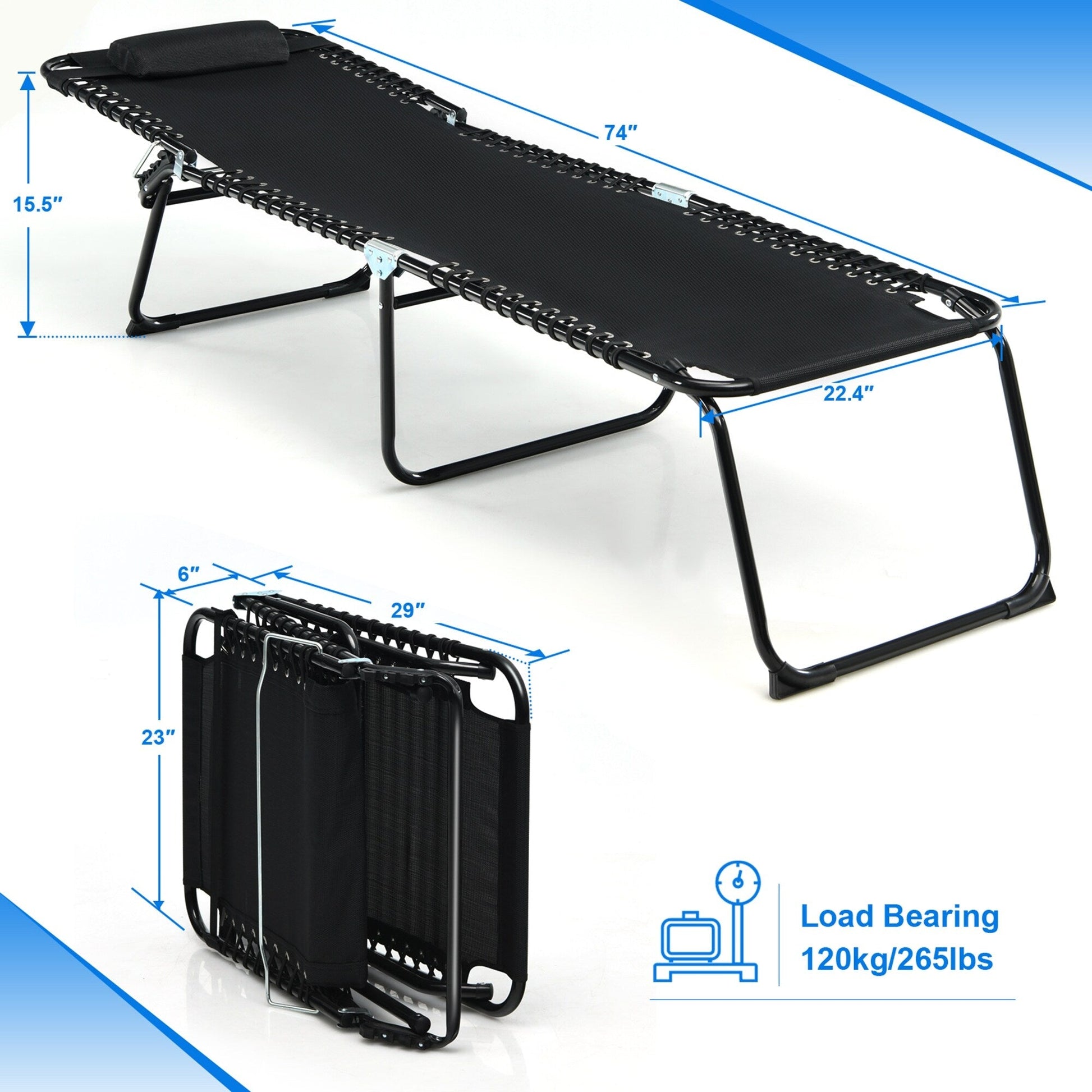 • Dimensions déplié : 74,5'' x 23'' x 15,5'' (L x l x H)