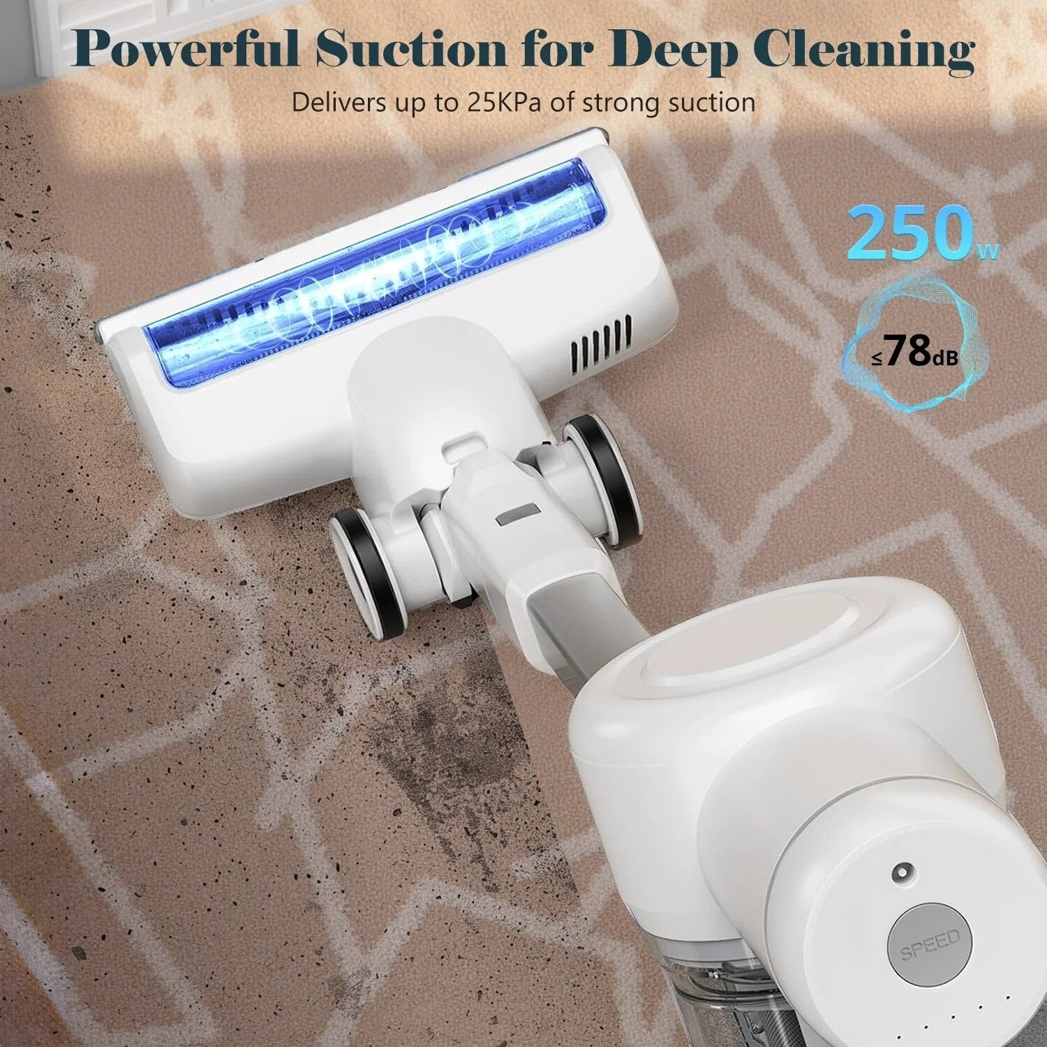 • [Aspiration puissante] : Trois modes d'aspiration permettent une personnalisation pour le nettoyage quotidien (mode éco) ou les tâches plus difficiles (aspiration élevée), facilement commutables avec un seul bouton. L'aspirateur balai filaire mis à jour est doté d'un moteur sans balai, offrant jusqu'à 25 kPa d'aspiration pour un nettoyage efficace sur tous les types de sols et tapis courts.