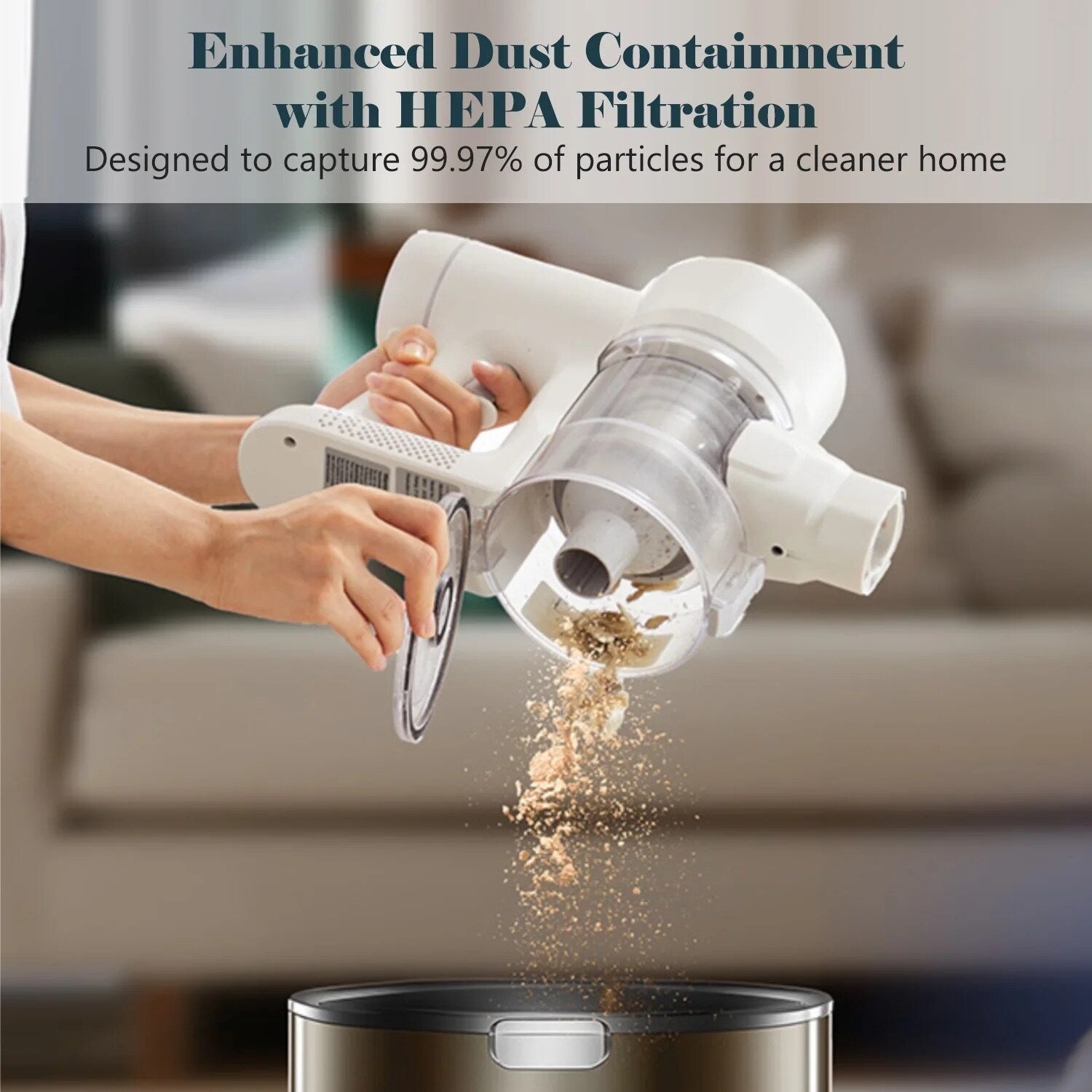 • Filtration HEPA : Comprend un système cyclonique scellé avec un filtre HEPA pour piéger la poussière et les allergènes, ainsi qu'un vidage du bac à poussière en une seule touche.