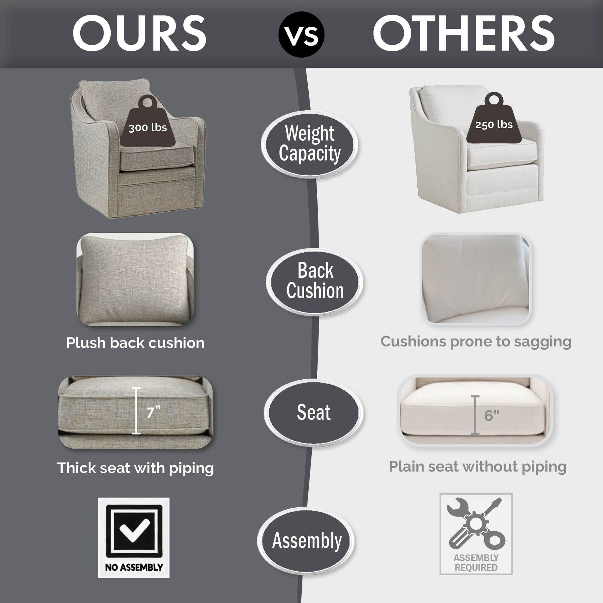 Sa structure en contreplaqué renforcée par du bois massif et son piètement pivotant en métal résistant à la corrosion lui confèrent une grande durabilité et supportent jusqu'à 136 kg (300 lbs).