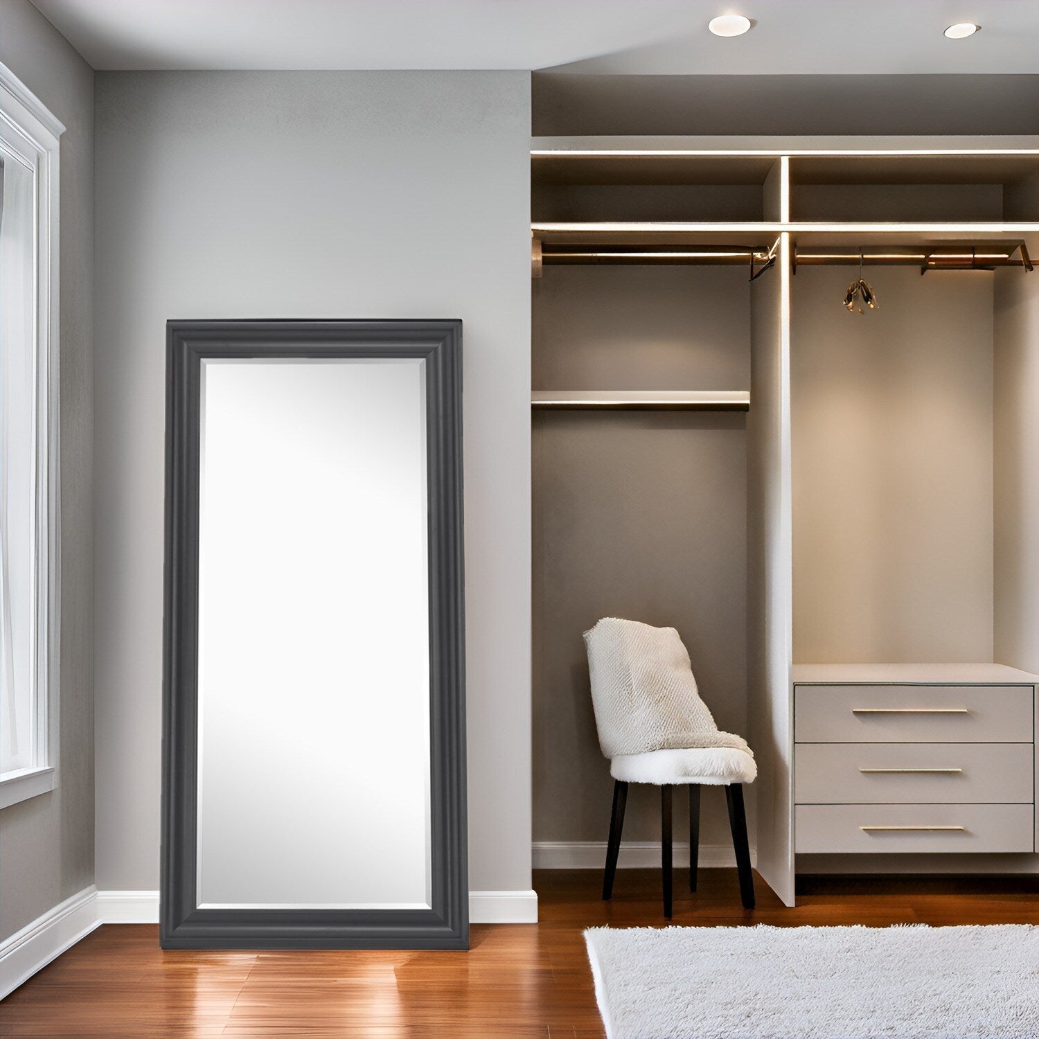 • CONSTRUCTION MINIMALISTE MODERNE : Notre miroir sur pied, de grande taille, vous permet de vous admirer de la tête aux pieds en toute sérénité. Il apporte une touche à la fois fonctionnelle et décorative à votre intérieur et s'intègre parfaitement dans un salon, une chambre, un dressing, une entrée, un couloir, une cabine d'essayage, etc. Son cadre encadré crée une illusion d'espace et lui confère un design moderne et classique.