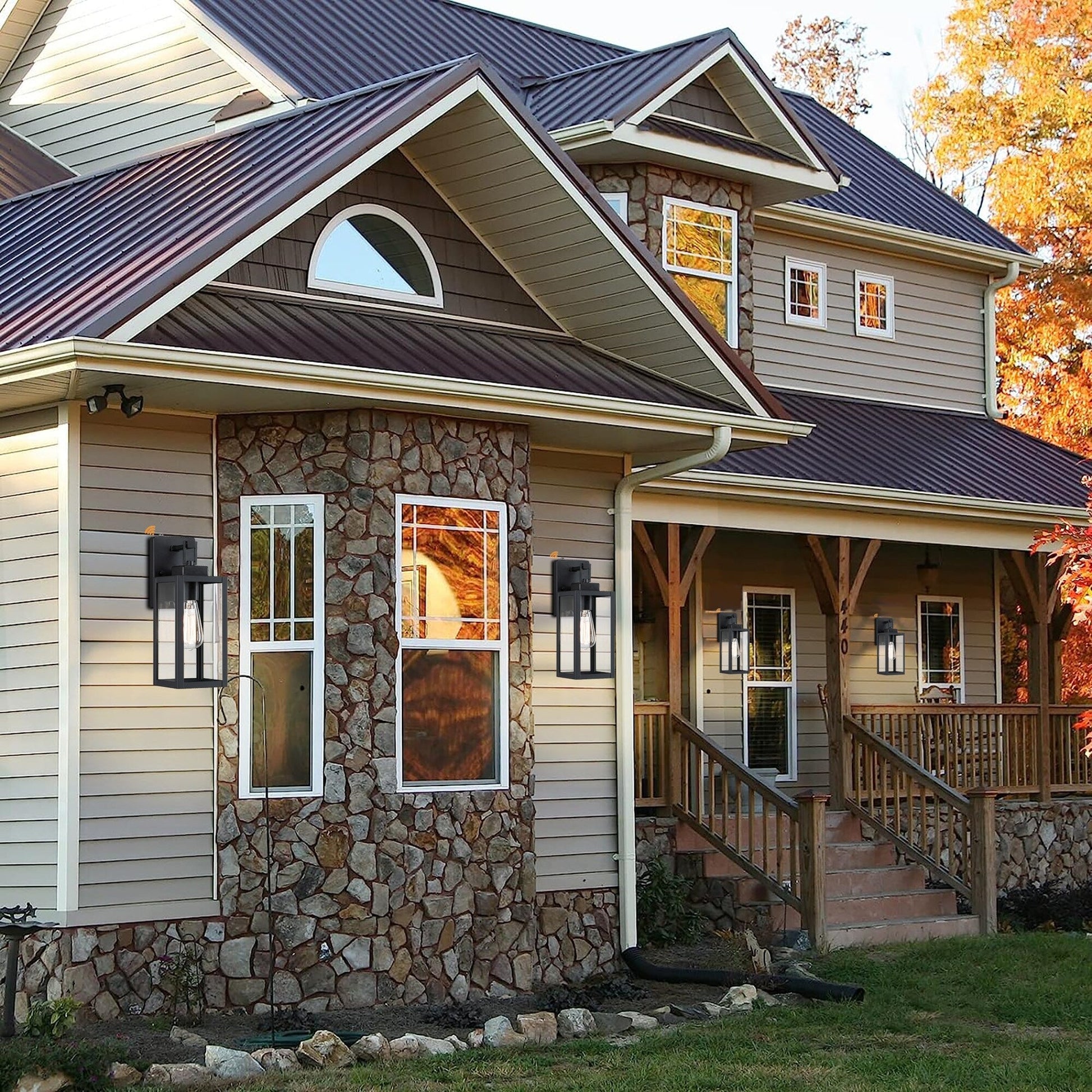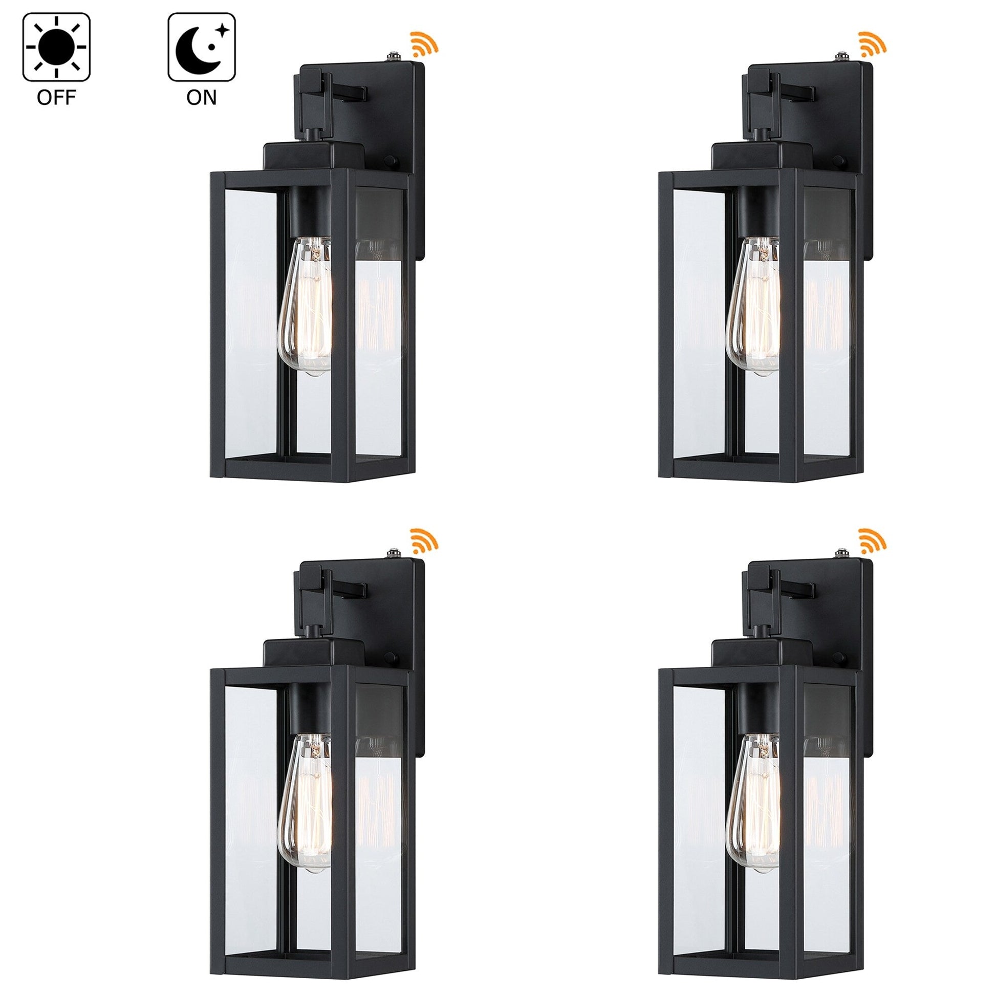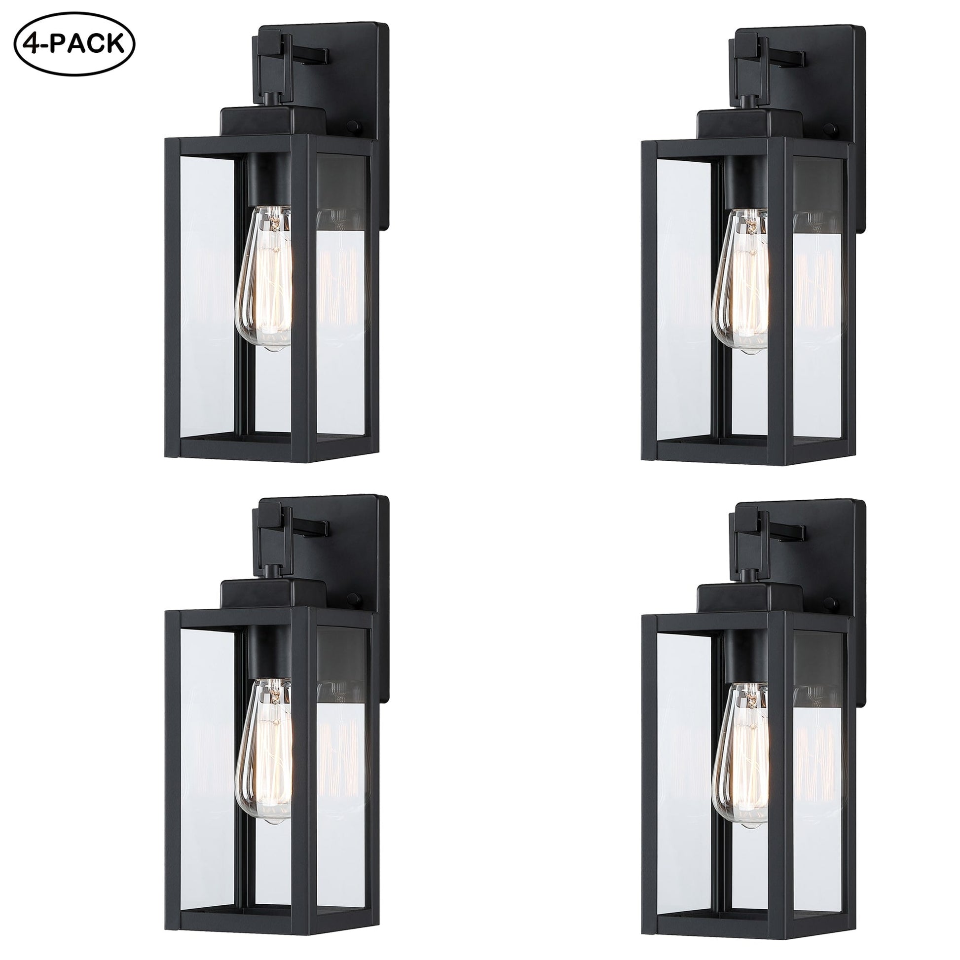 Lot de 4 appliques murales extérieures à 1 lumière, finition noir mat et abat-jour en verre transparent