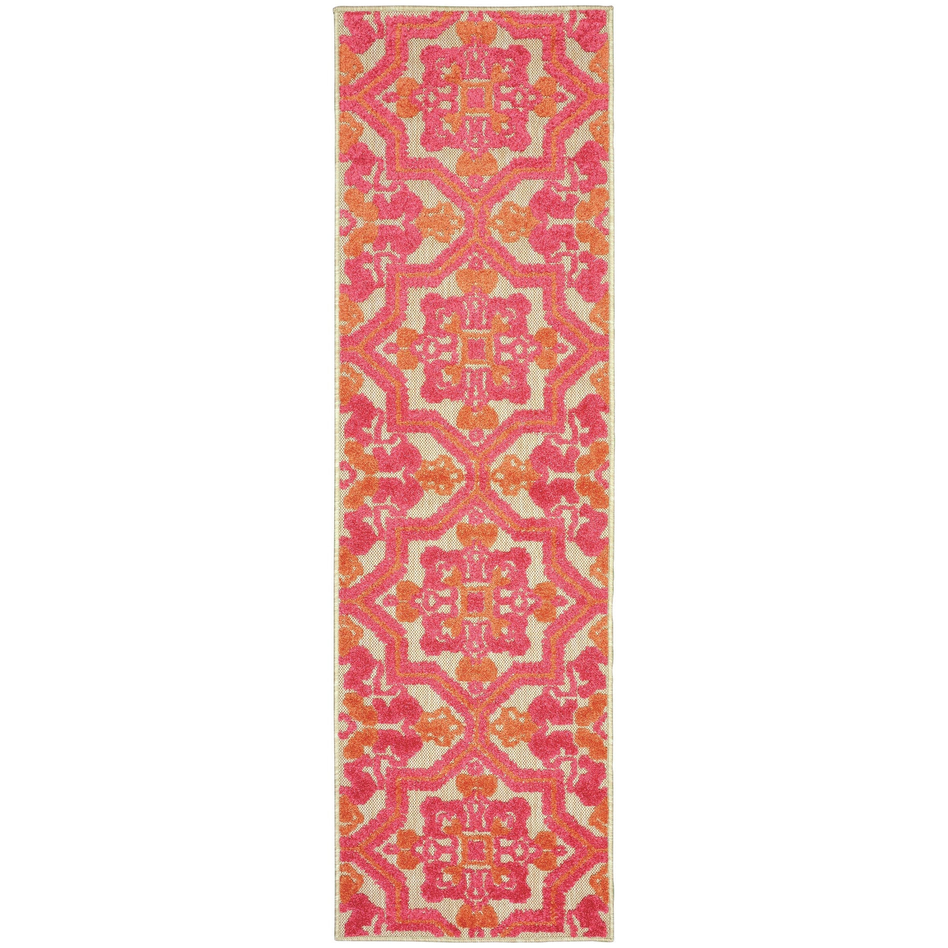 Tapis d'intérieur/extérieur Vista Home Capri à poils mixtes roses/oranges à motifs floraux.