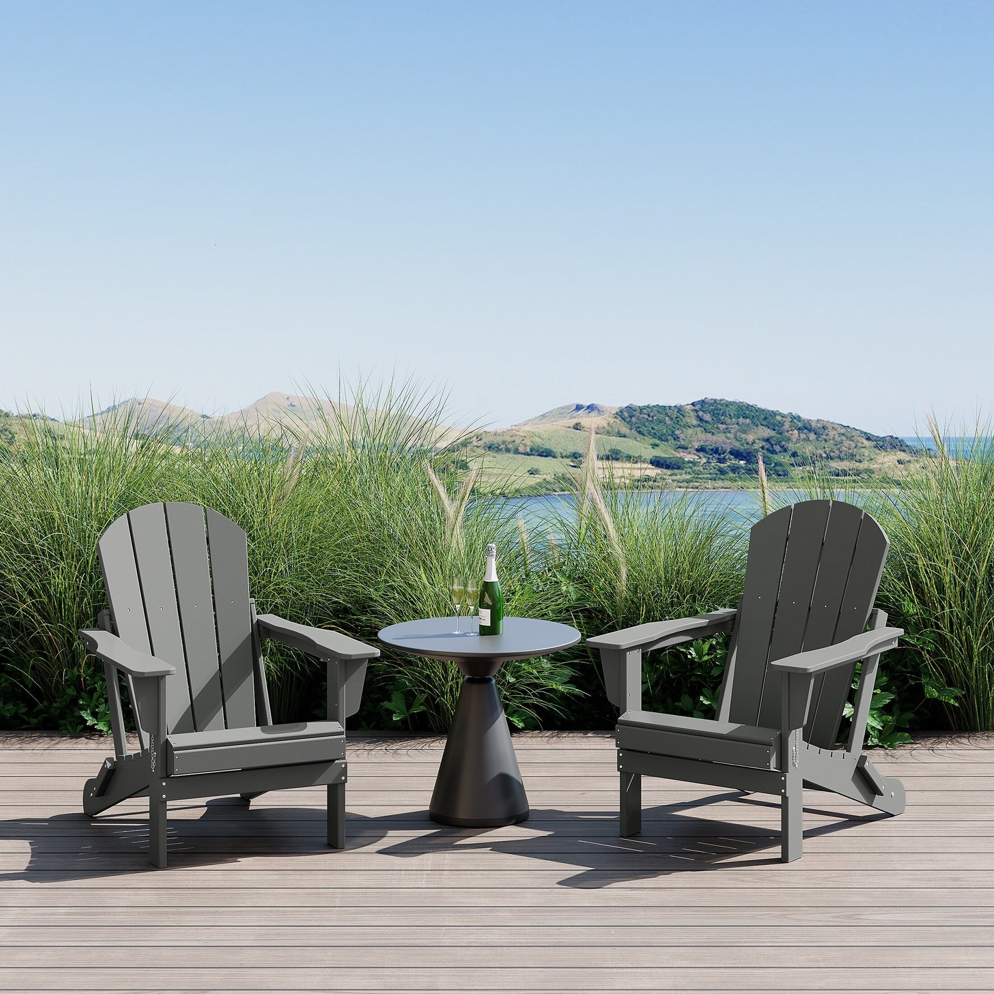 - L'ensemble comprend : Deux (2) chaises Adirondack en polyéthylène